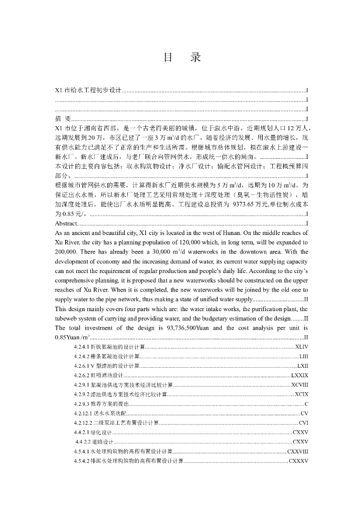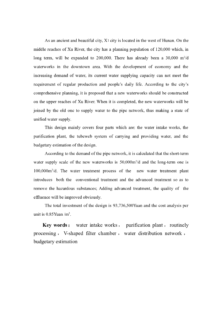 湖南5万吨净水厂给排水工艺.doc