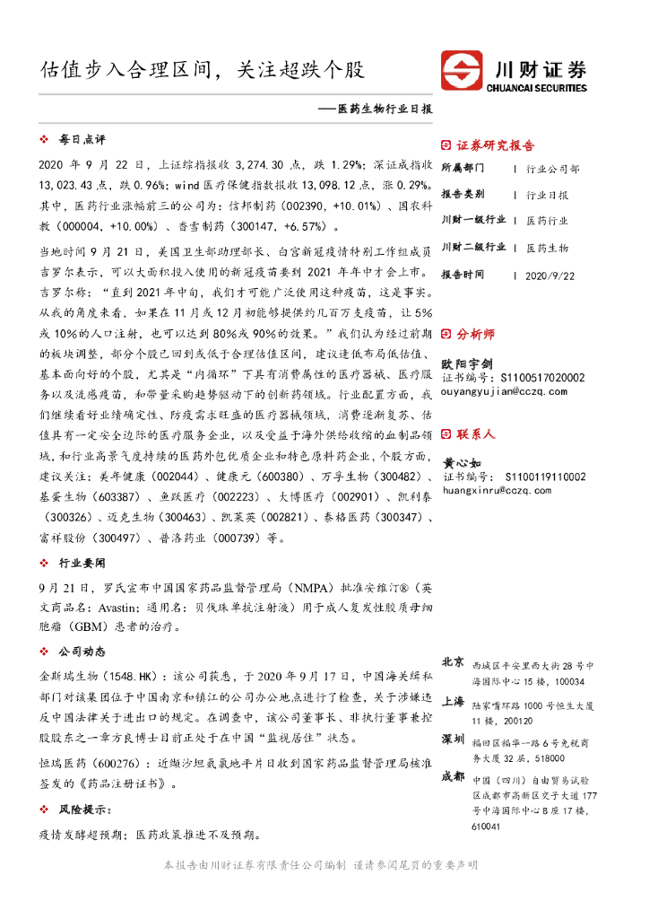 川财证券:医药生物行业日报:估值步入合理区间,关注超跌个股.pdf