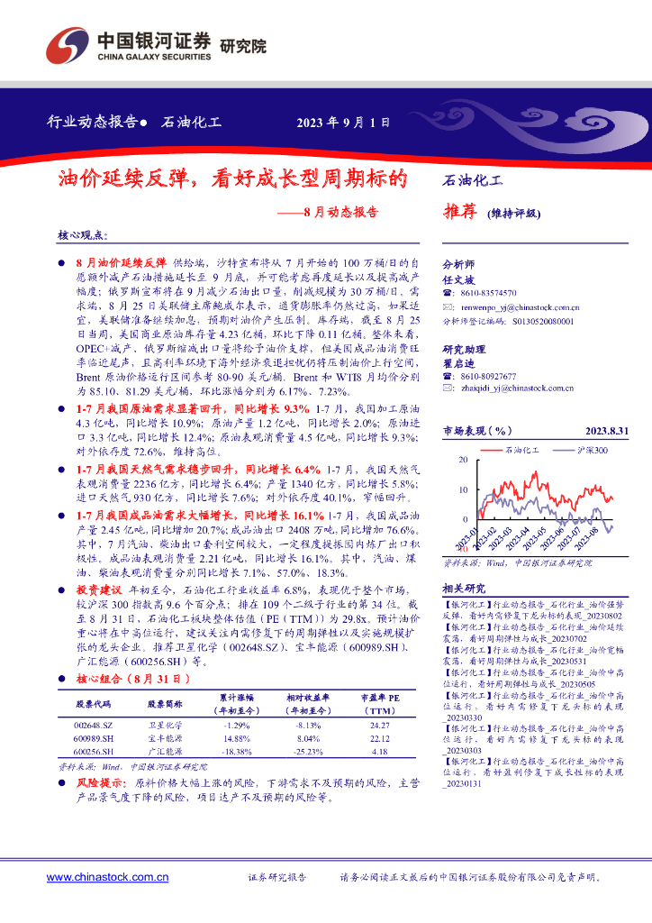 中国银河:石油化工行业8月动态报告:油价延续反弹,看好成长型周期标的.pdf