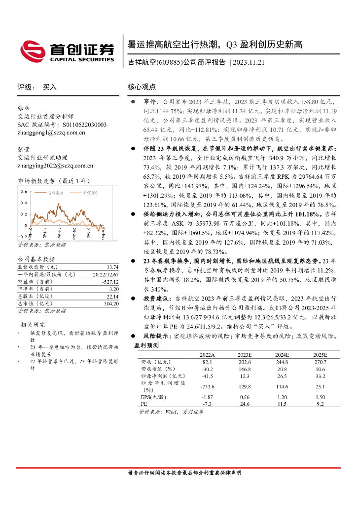 首创证券:吉祥航空(603885)-公司简评报告:暑运推高航空出行热潮,Q3盈利创历史新高.pdf
