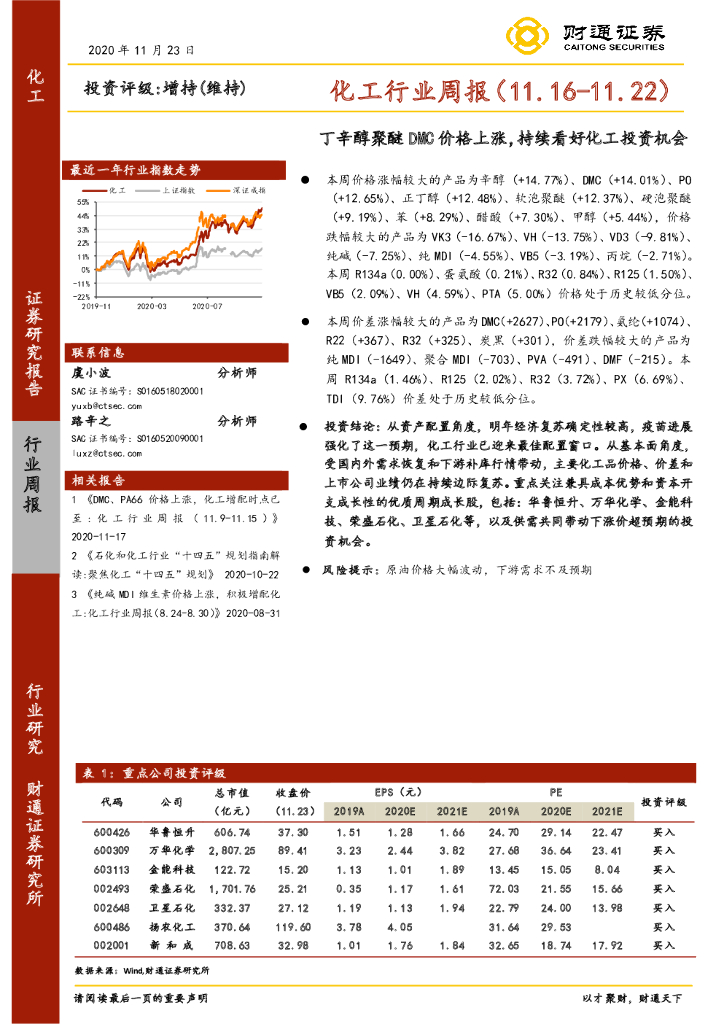 财通证券:化工行业周报:丁辛醇聚醚DMC价格上涨,持续看好化工投资机会.pdf