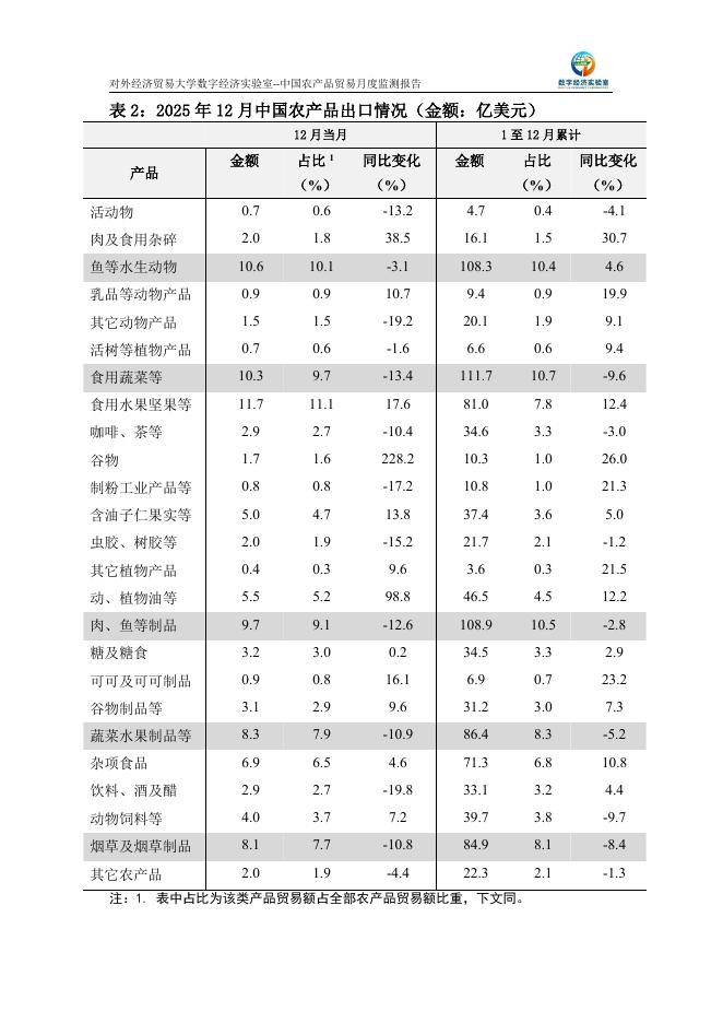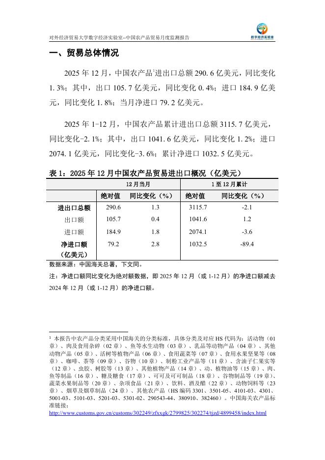 对外经济贸易大学:中国农产品贸易月度监测报告(2025年1-12月).pdf
