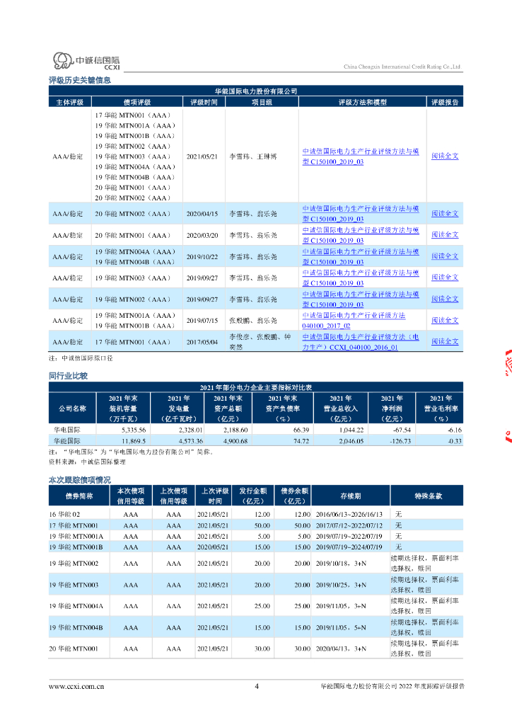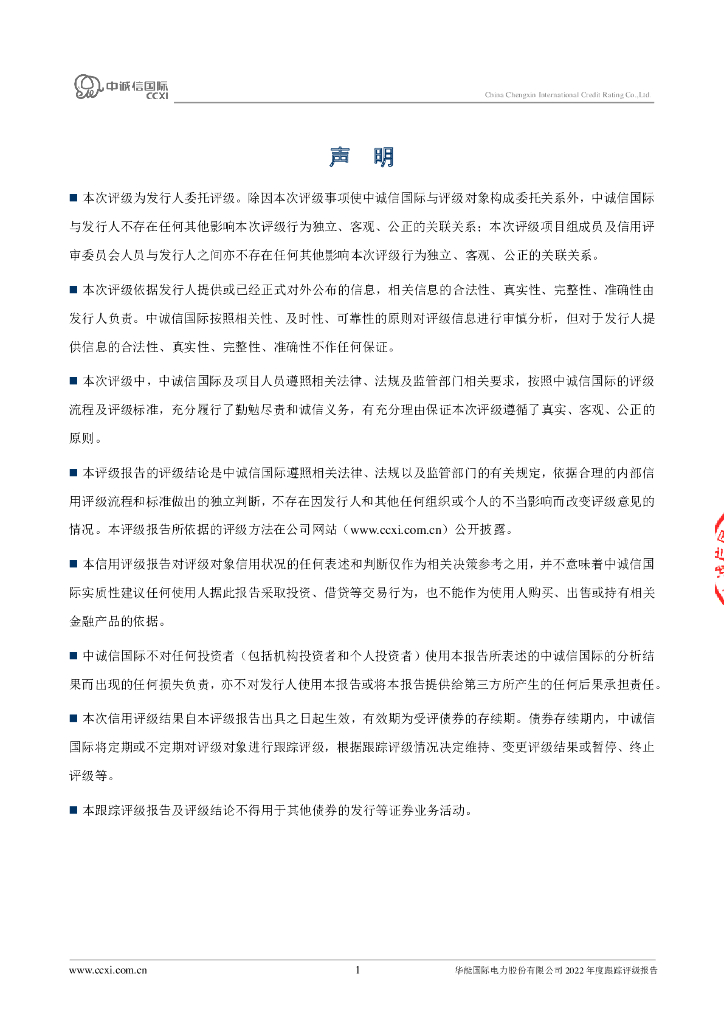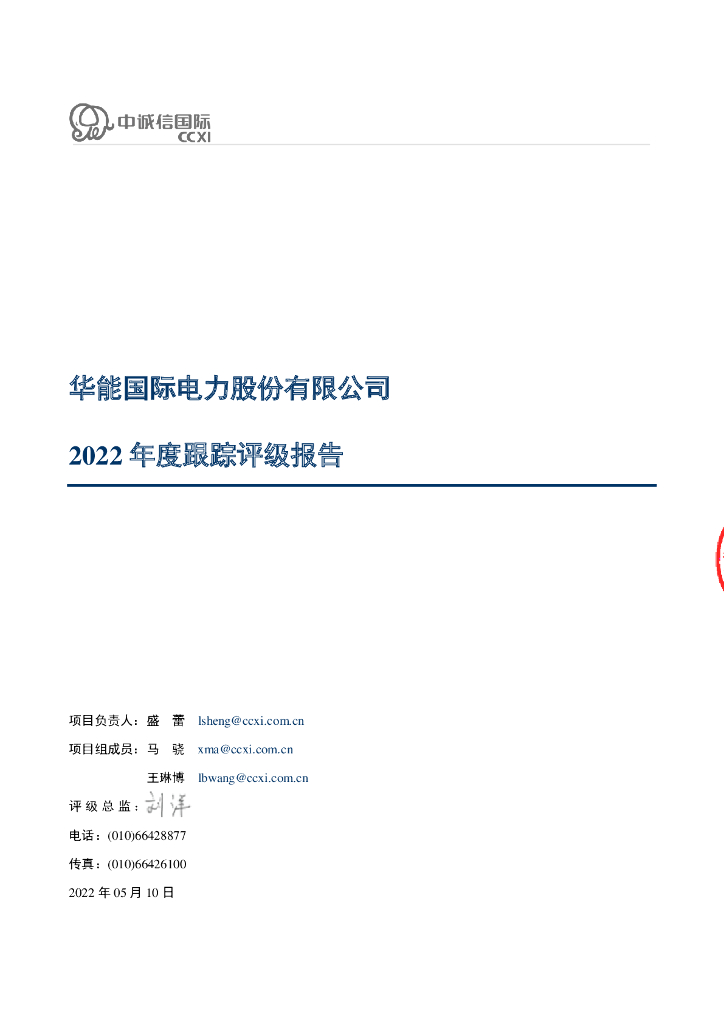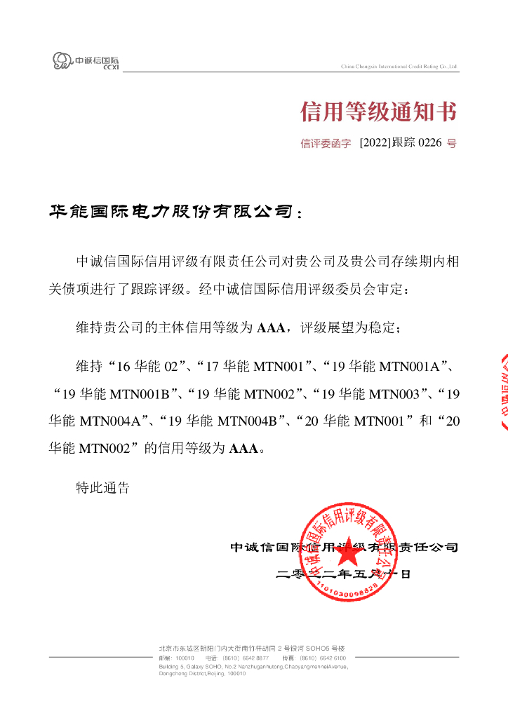 中诚信:华能国际电力股份有限公司2022年度跟踪评级报告.pdf