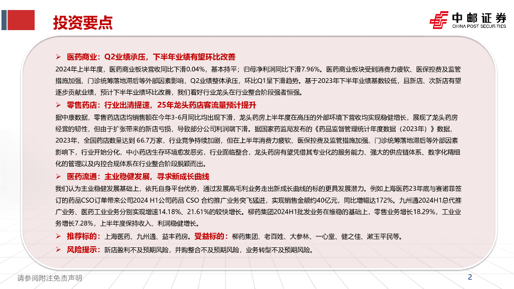 中邮证券:医药商业中报总结:集中度加速提升,龙头企业有望率先触底反弹.pdf