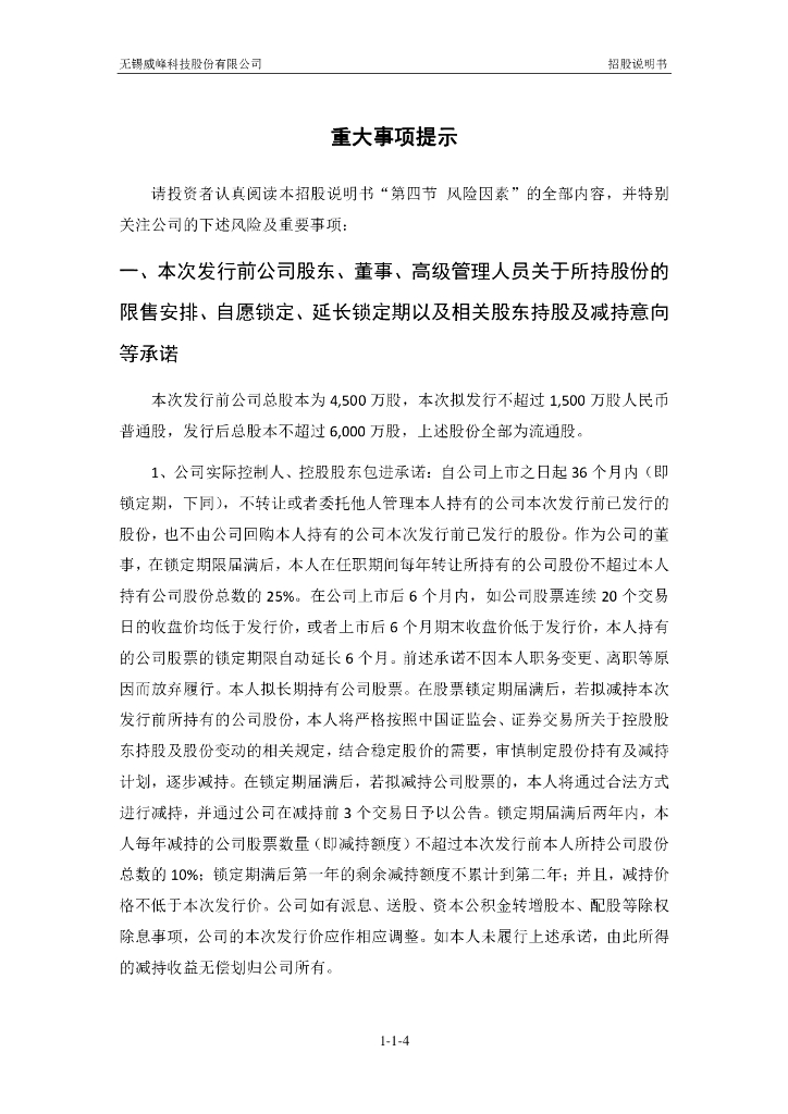 无锡威峰科技股份有限公司深交所创业板IPO上市招股说明书.pdf