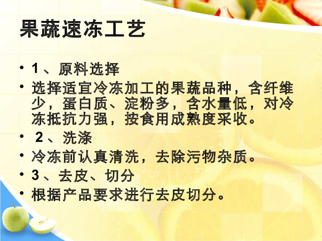 《食品加工技术》演示文稿-果蔬速冻加工实训.pdf