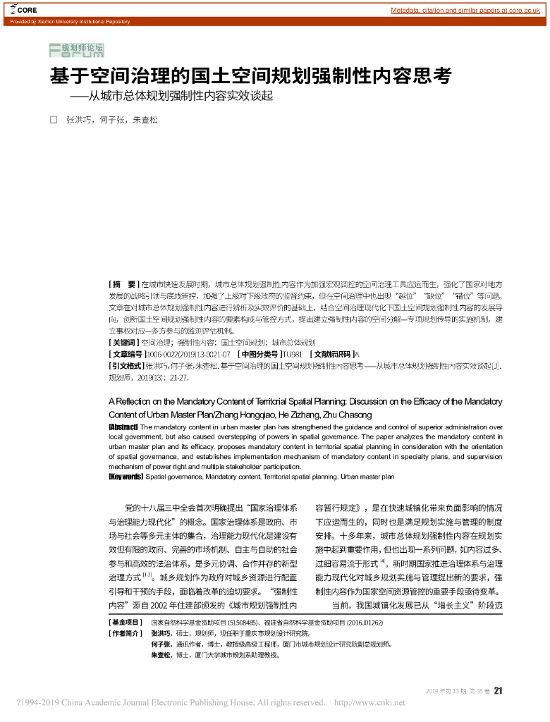 基于空间治理的国土空间规划强制性内容思考——从城市总体规划强制性内容实效谈起.pdf