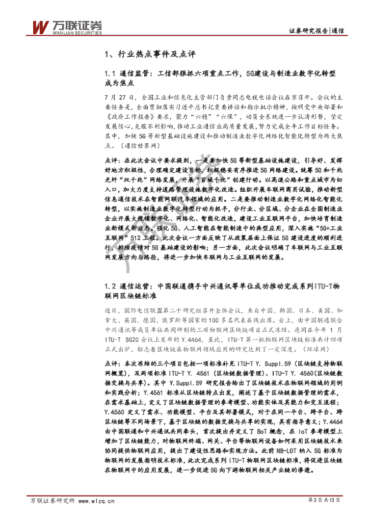 万联证券:通信行业周观点:ITU-T标准完成,区块链推动物联网发展再加速.pdf