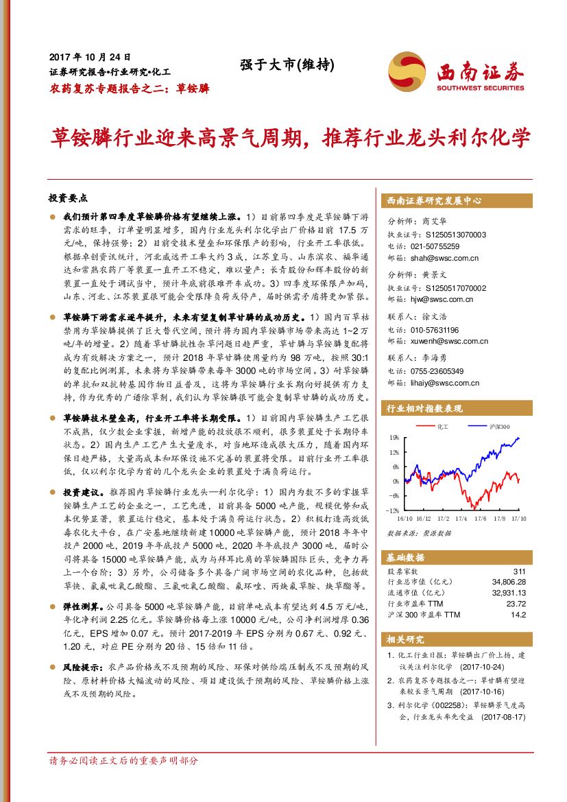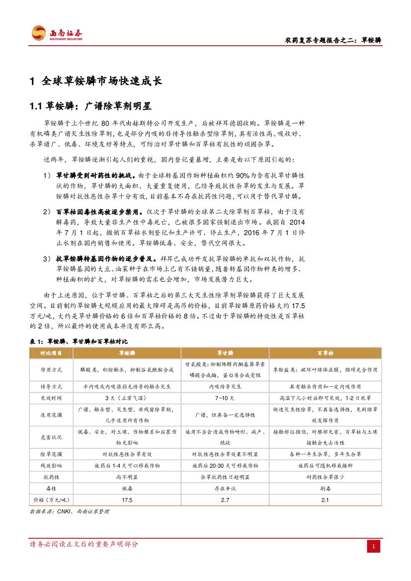 西南证券:农药复苏专题报告之二:草铵膦行业迎来高景气周期,推荐行业龙头利尔化学.pdf