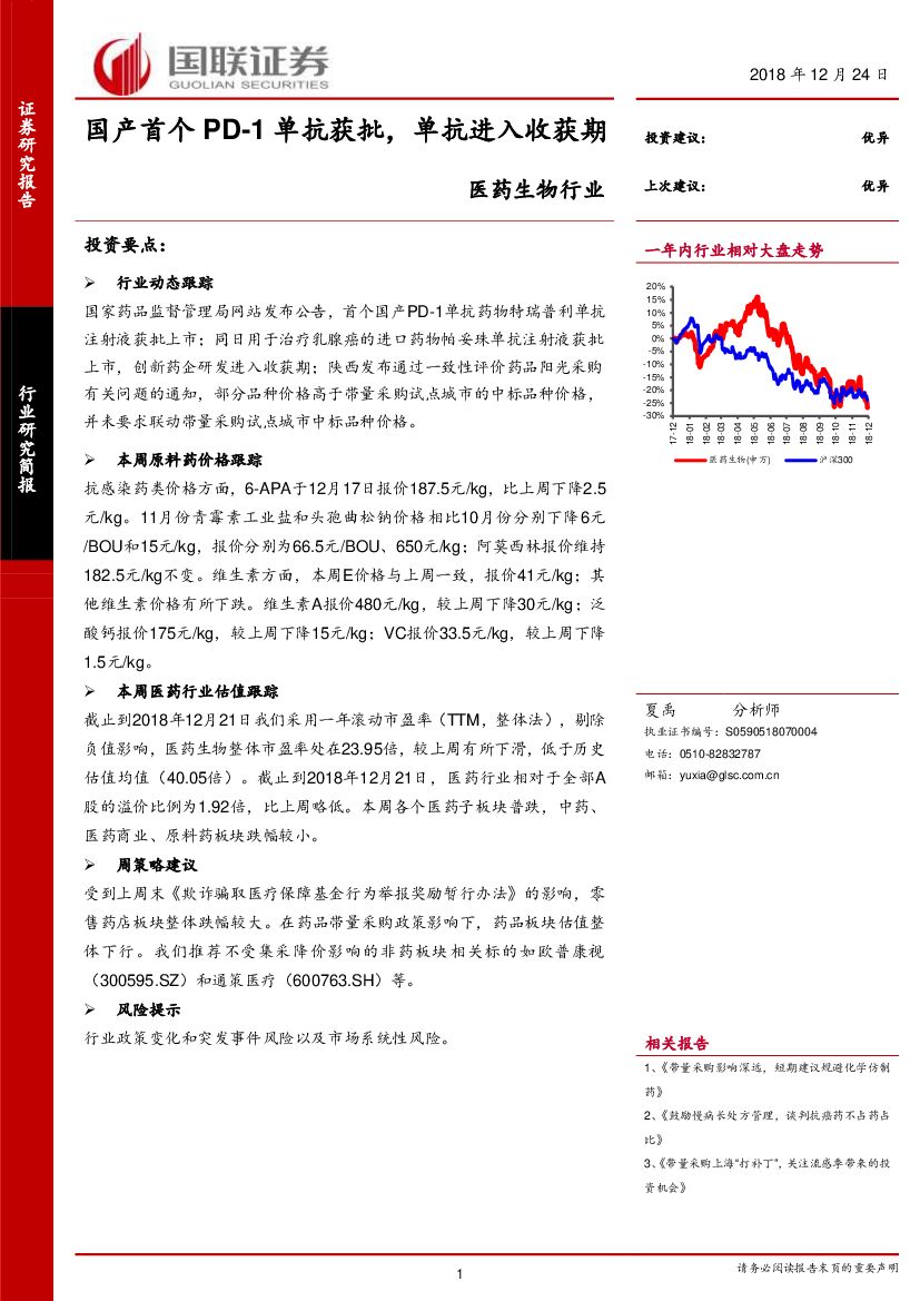 国联证券:医药生物行业:国产首个PD-1单抗获批,单抗进入收获期.pdf