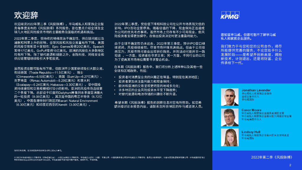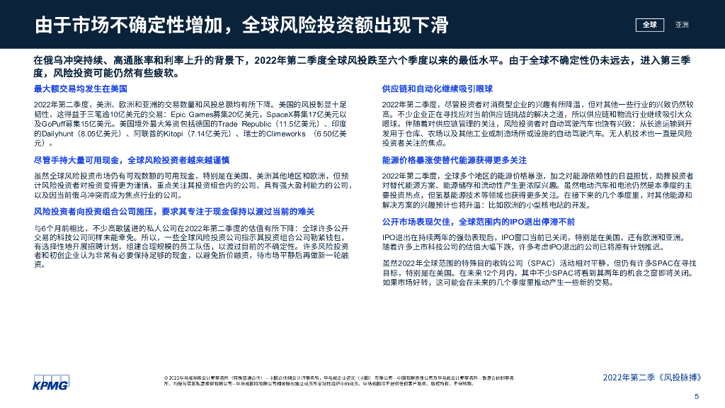 毕马威:风投脉搏:2022年第二季度全球风投趋势分析报告.pdf