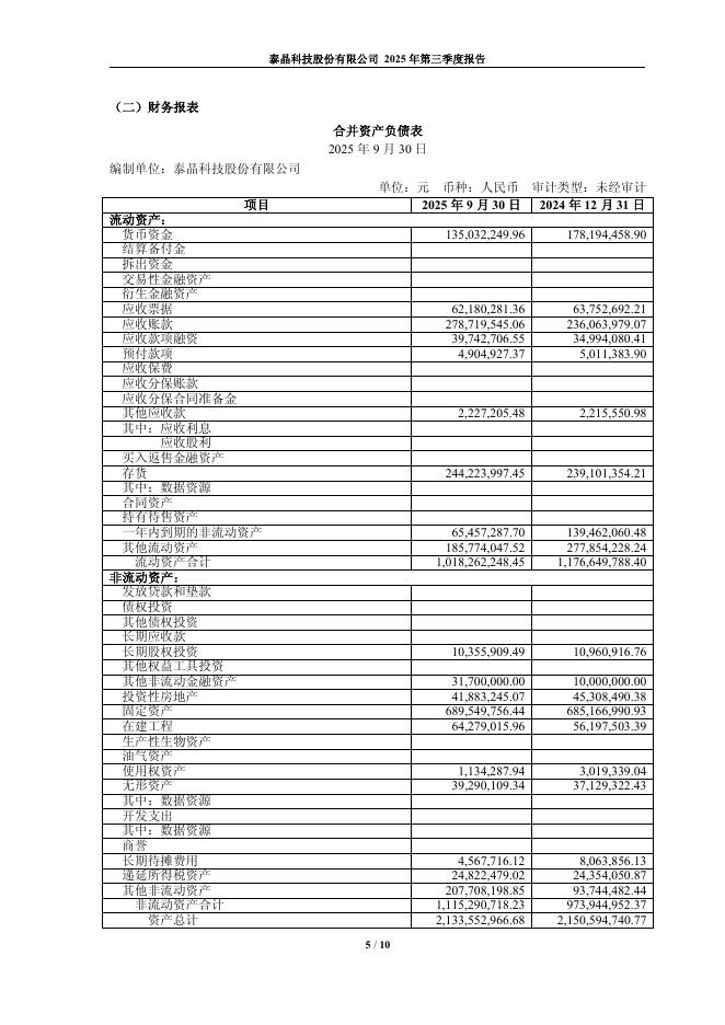 603738-泰晶科技:泰晶科技股份有限公司2025年第三季度报告.pdf