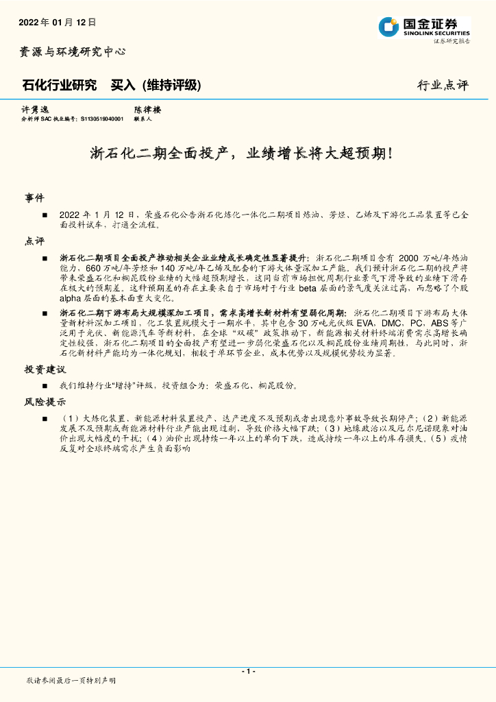 国金证券:石化行业点评:浙石化二期全面投产,业绩增长将大超预期!.pdf