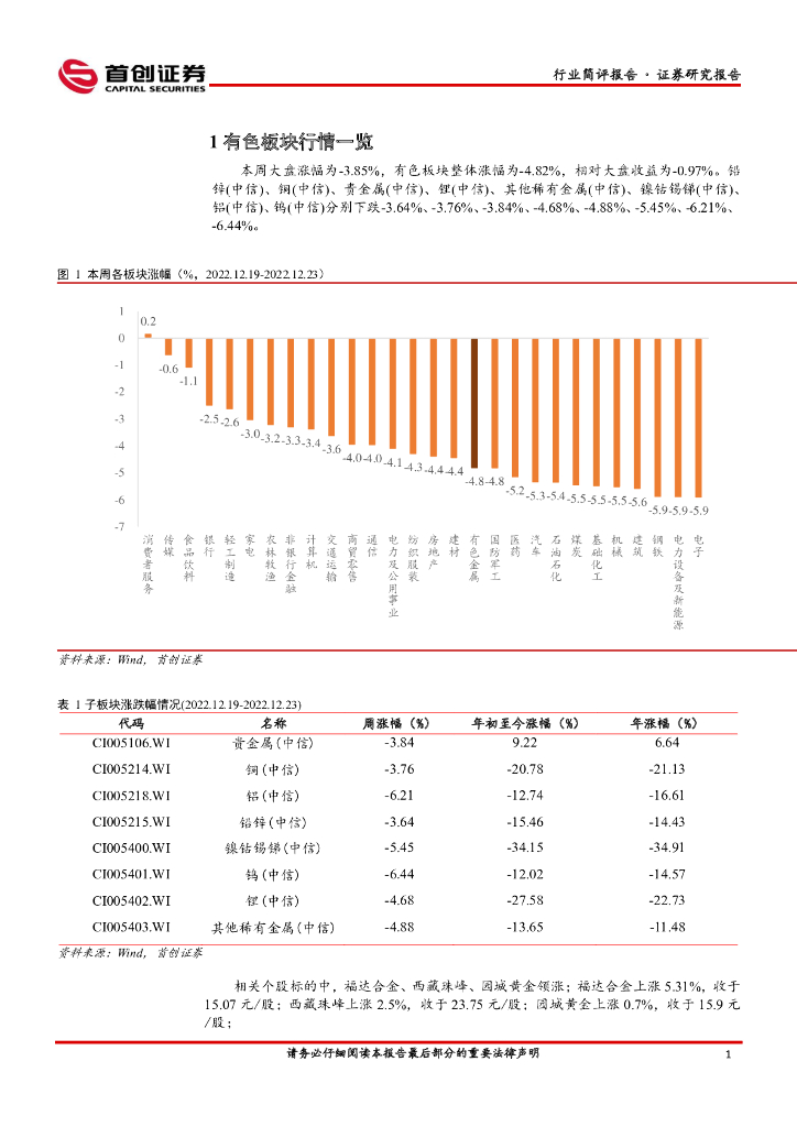 首创证券:有色行业周报:国内疫情放开&下游提前放假 需求疲弱工业金属承压运行.pdf
