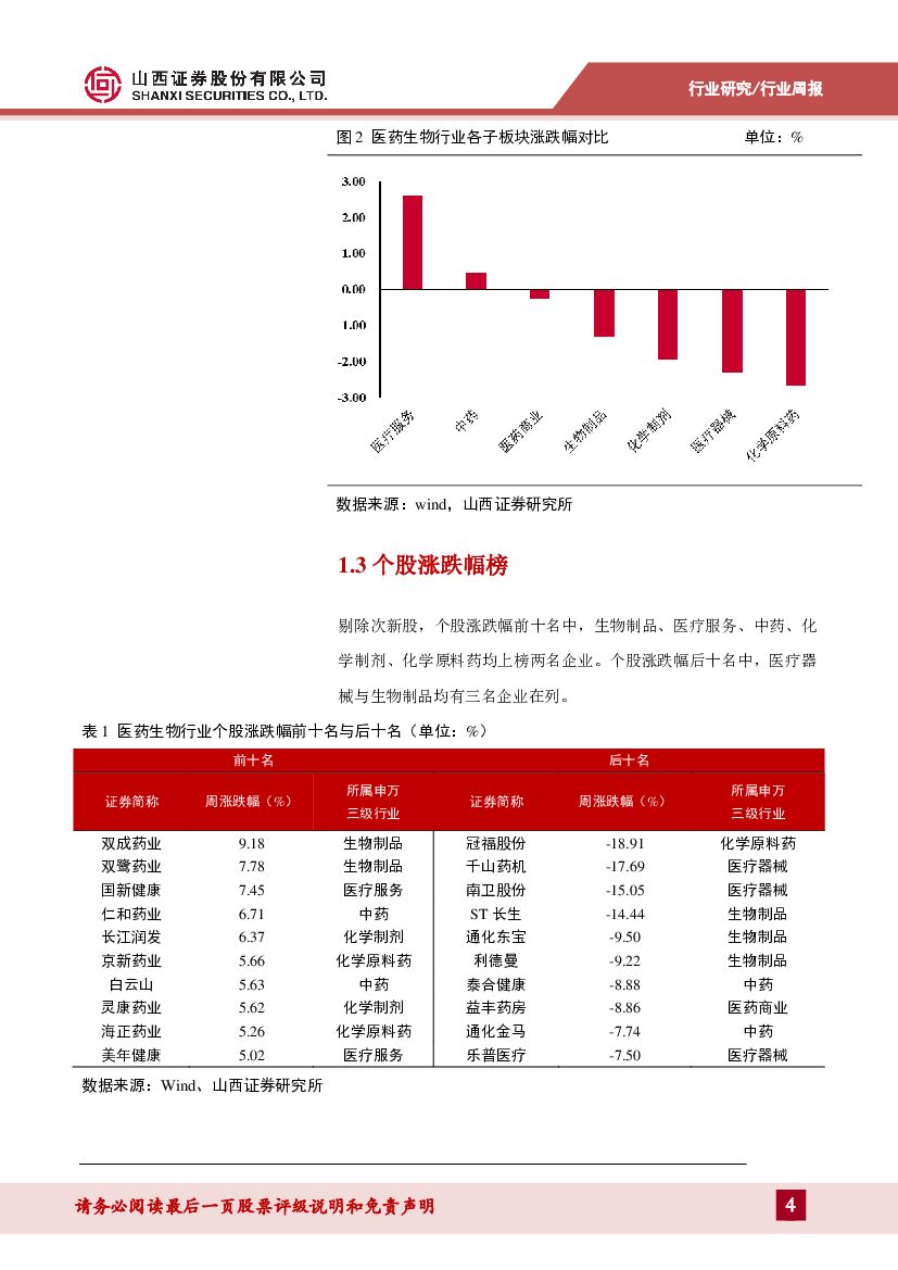 山西证券:医药生物行业周报:行业整体业绩表现优异,关注细分领域.pdf