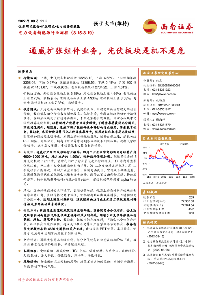 西南证券:电力设备新能源行业周报:通威扩张组件业务,光伏板块是机不是危.pdf