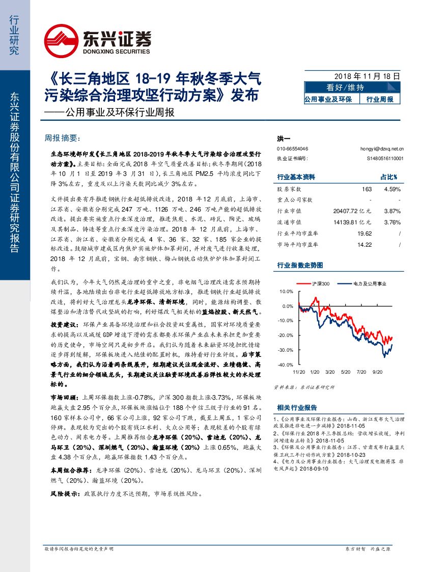 东兴证券:公用事业及环保行业周报:《长三角地区18-19年秋冬季大气污染综合治理攻坚行动方案》发布.pdf