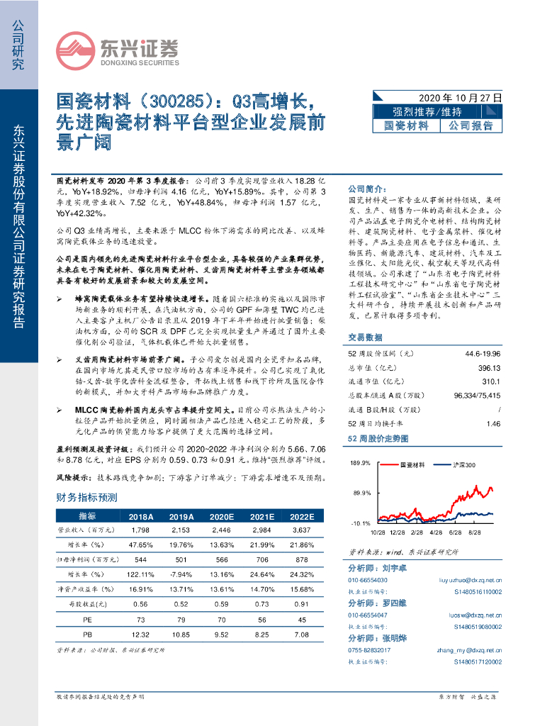 东兴证券:国瓷材料(300285)-Q3高增长,先进陶瓷材料平台型企业发展前景广阔.pdf