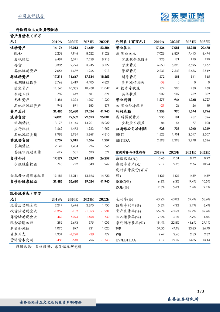 东吴证券:科伦药业(002422)-业绩受疫情影响明显,打造仿制药产品集群.pdf