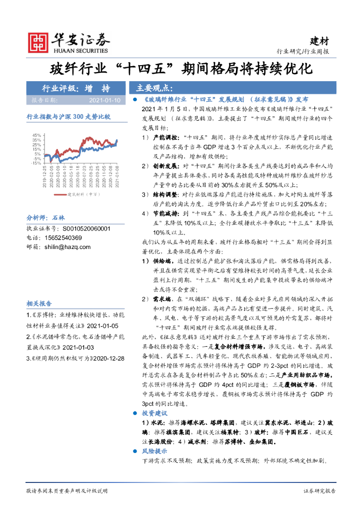 华安证券:建材行业周报:玻纤行业“十四五”期间格局将持续优化.pdf