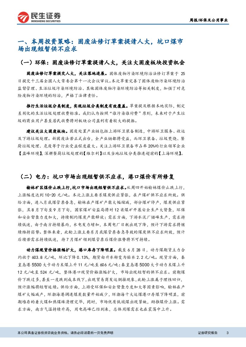 民生证券:环保及公用事业周报:固废法修订草案提请人大,坑口煤市场出现短暂供不应求.pdf