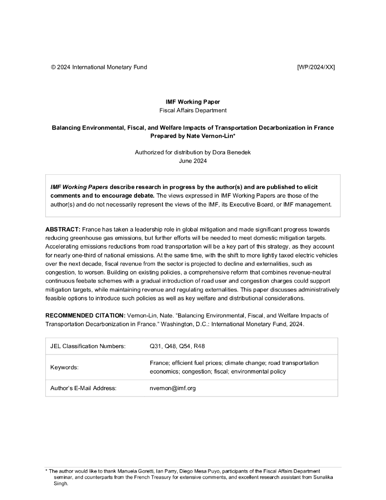国际货币基金组织:平衡法国交通脱碳的环境、财政和福利影响(英文版).pdf