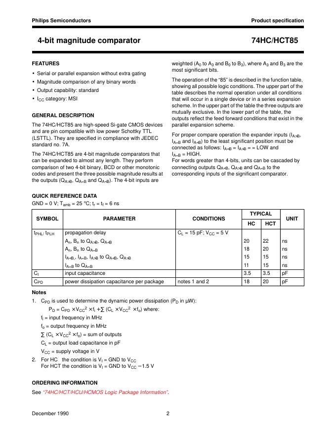 PHILIPS 74HC/HCT85 4-bit magnitude comparator 数据手册.pdf
