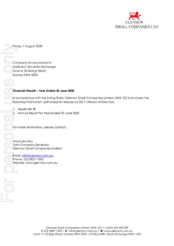 Glennon Small Companies Limited(GC1)2020财年年度报告(英文版).pdf
