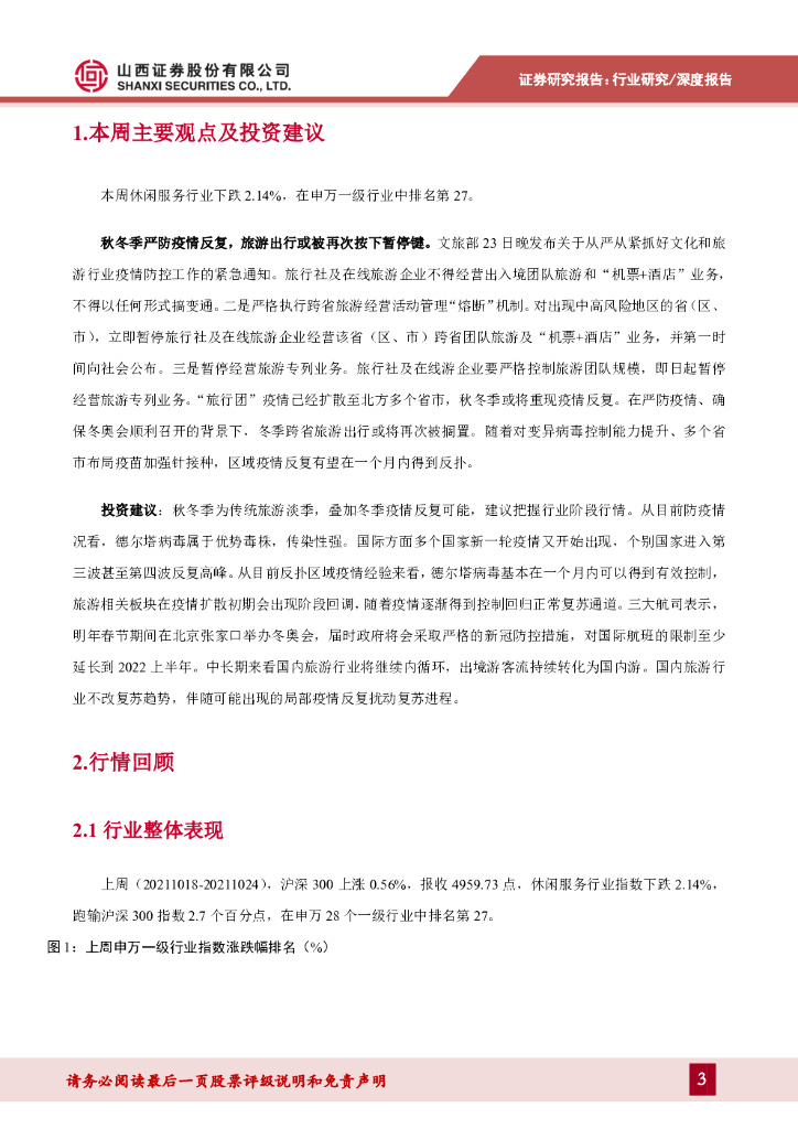 山西证券:社会服务行业周报:秋冬季严防疫情反复,旅游出行或被再次按下暂停键.pdf