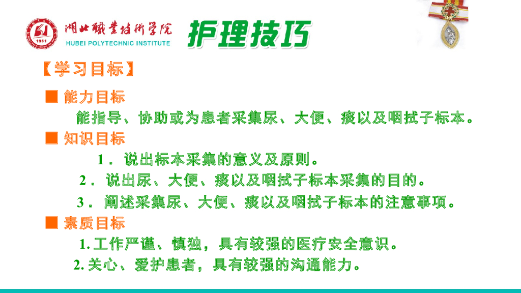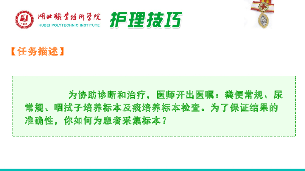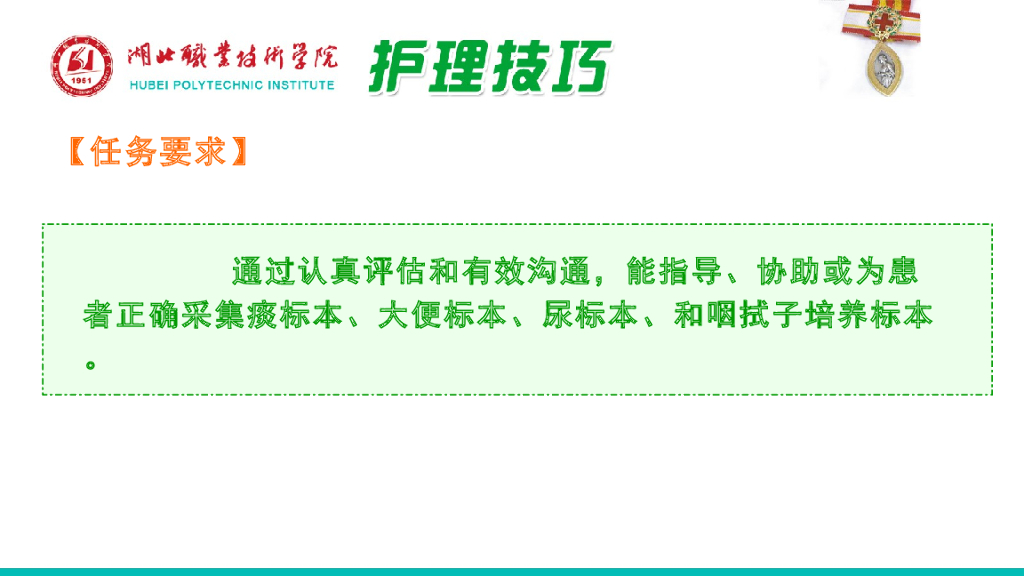 《护理技巧》演示文稿-子任务一 尿、大便、痰、咽拭子标本采集法.pdf