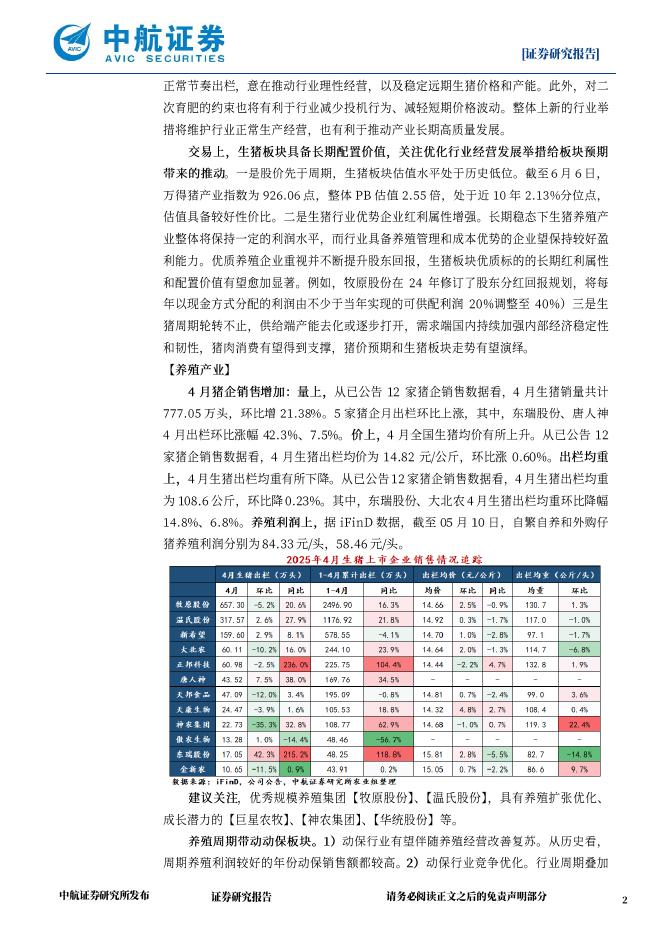 中航证券:农业周观点:多措引导猪企,利好产业高质量发展.pdf