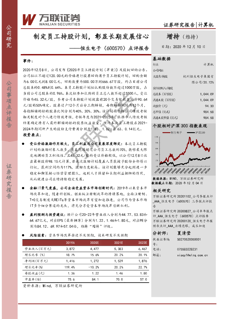 万联证券:恒生电子(600570)-点评报告:制定员工持股计划,彰显长期发展信心.pdf