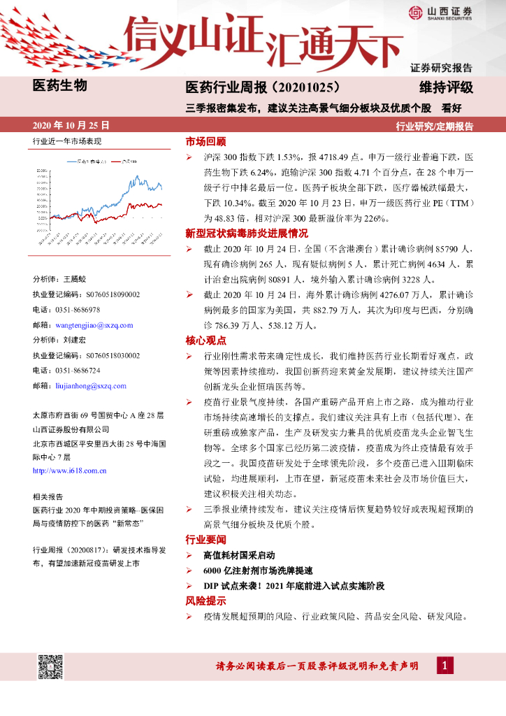 山西证券:医药行业周报:三季报密集发布,建议关注高景气细分板块及优质个股.pdf
