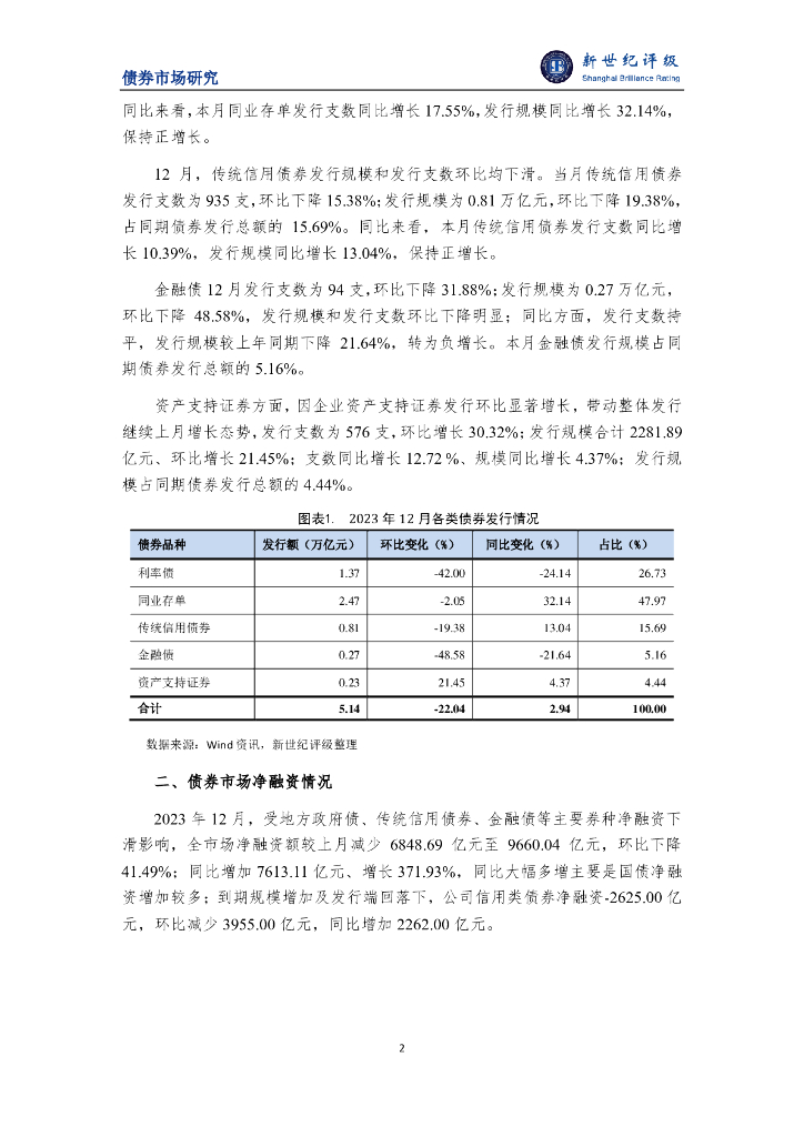 新世纪评级:多券种发行收缩 债市发行规模回落——2023年12月债券市场发行概况与政策汇总.pdf