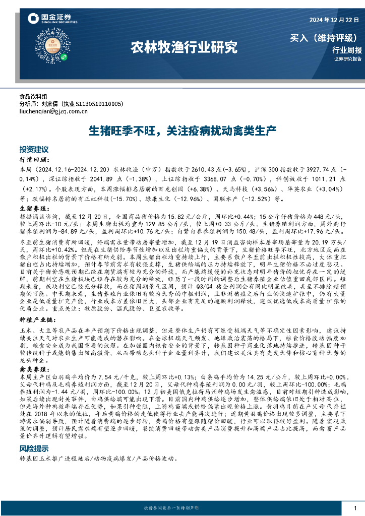 国金证券:农林牧渔行业研究:生猪旺季不旺,关注疫病扰动禽类生产.pdf