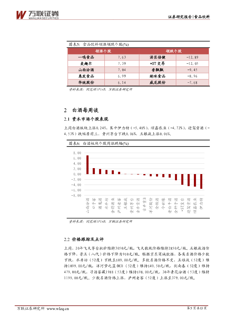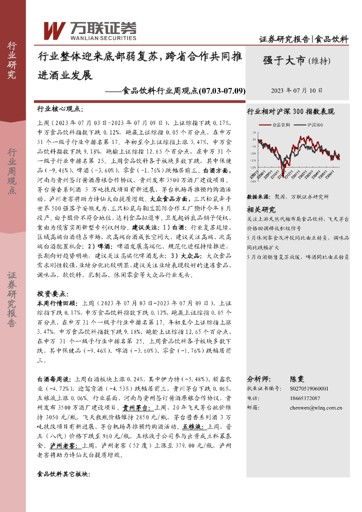 万联证券:食品饮料行业周观点:行业整体迎来底部弱复苏,跨省合作共同推进酒业发展.pdf