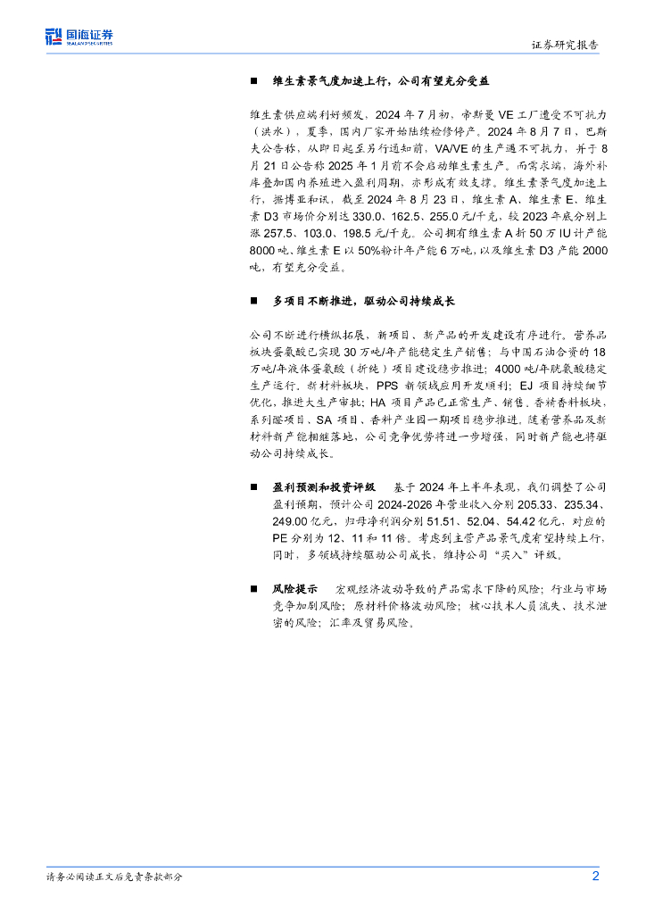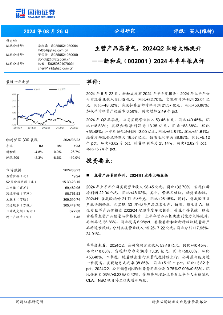 国海证券:新和成(002001)-2024年半年报点评:主营产品高景气,2024Q2业绩大幅提升.pdf