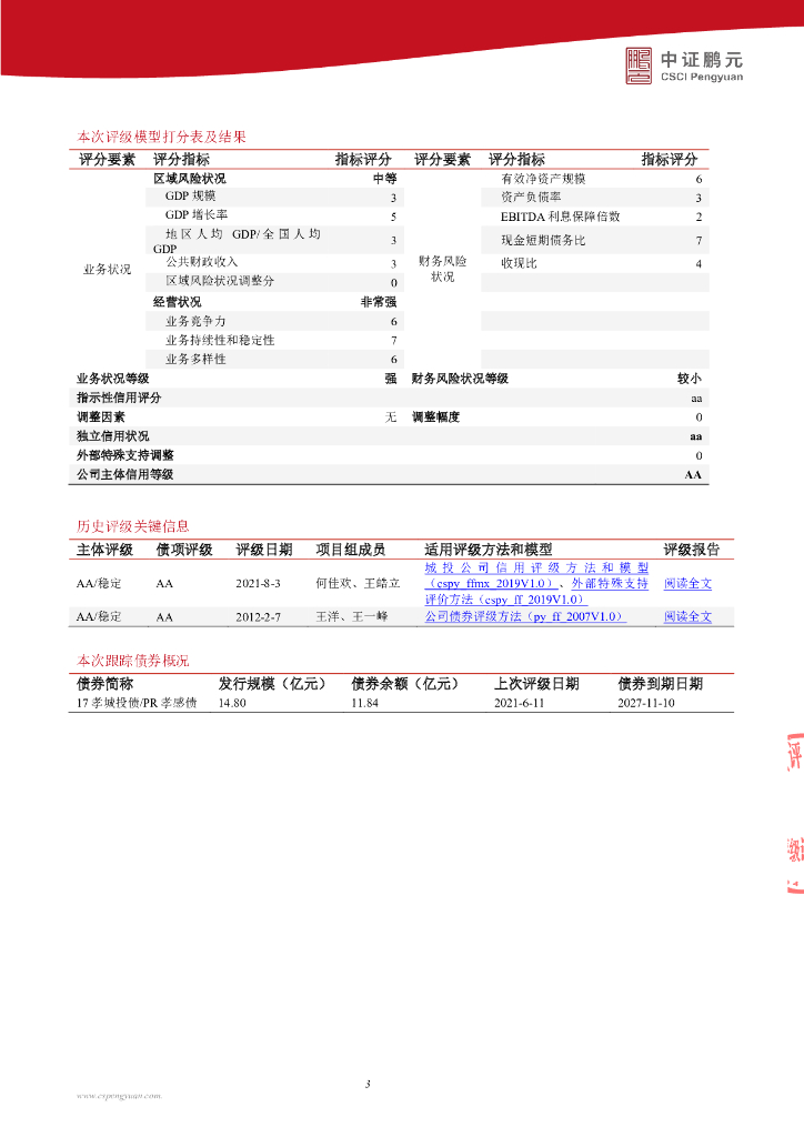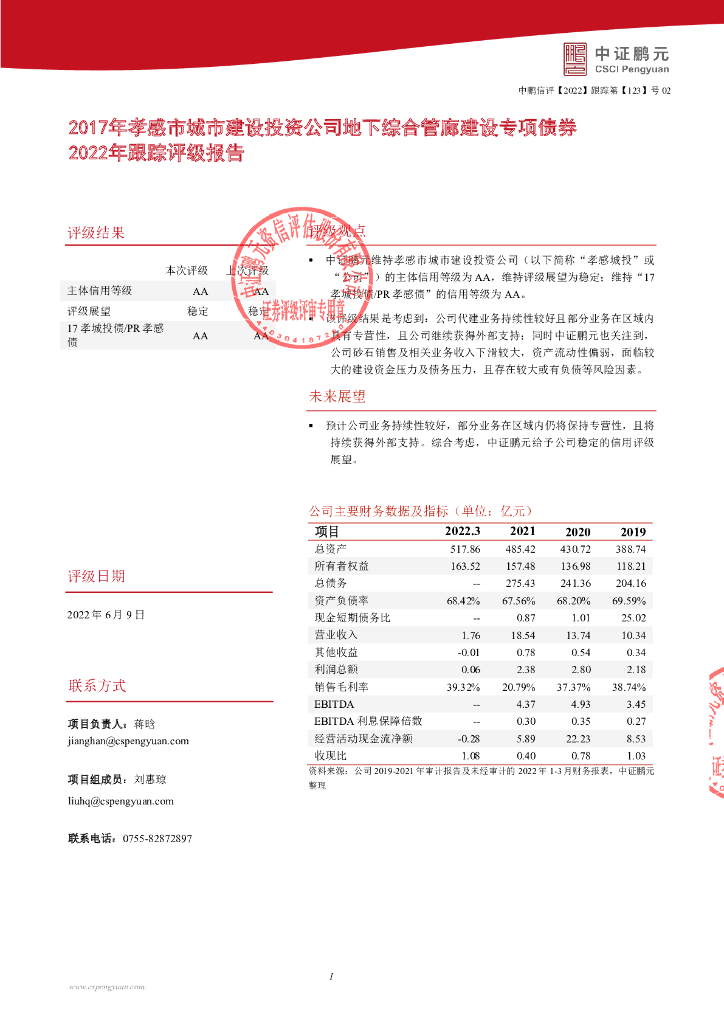 鹏元:2017年孝感市城市建设投资公司地下综合管廊建设专项债券2022年跟踪评级报告.pdf