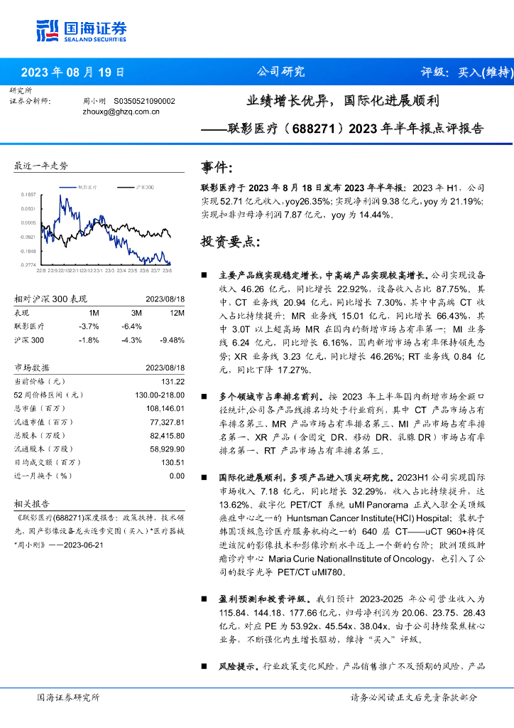 国海证券:联影医疗(688271)-2023年半年报点评报告:业绩增长优异,国际化进展顺利.pdf