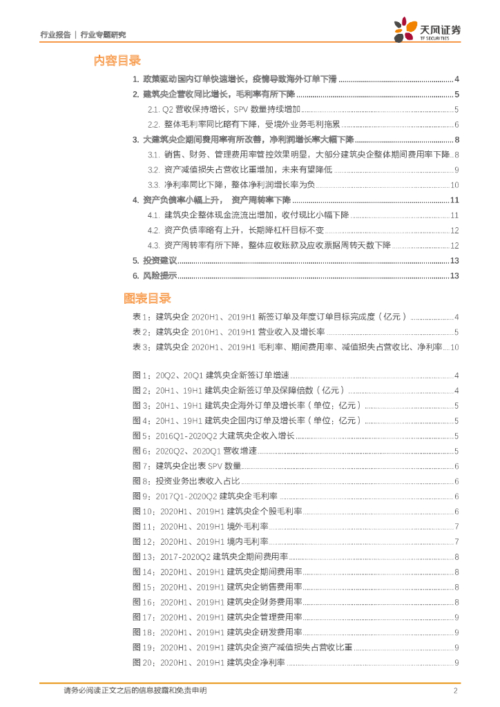 天风证券:建筑央企2020年半年报汇总分析:疫情期间大企业优势凸显,上半年订单、收入稳步增长.pdf