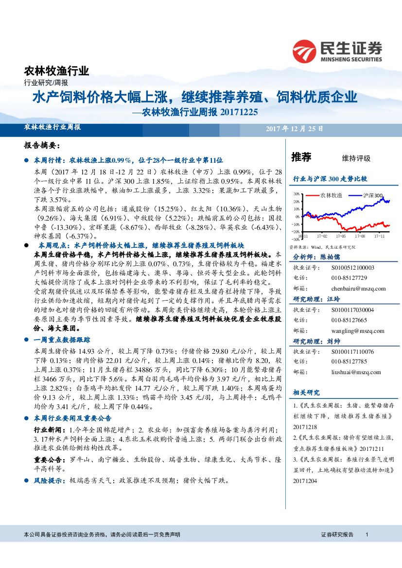 民生证券:农林牧渔行业周报:水产饲料价格大幅上涨,继续推荐养殖、饲料优质企业.pdf
