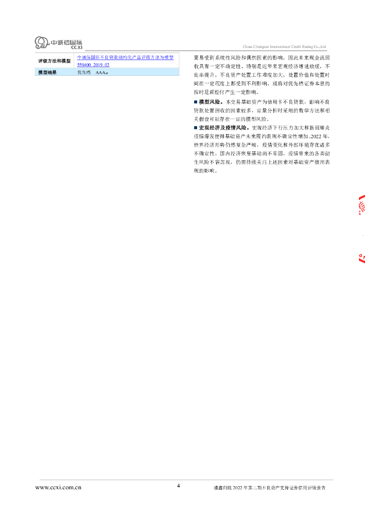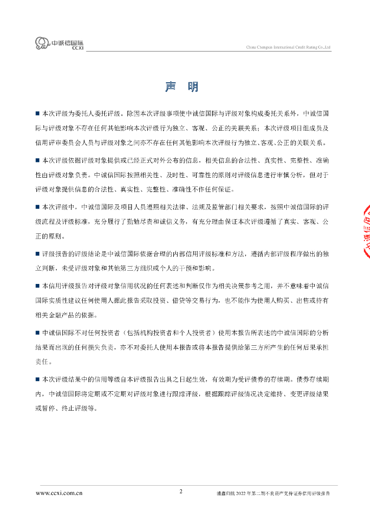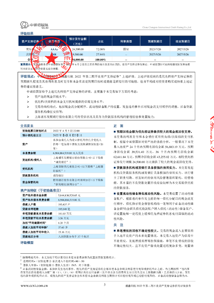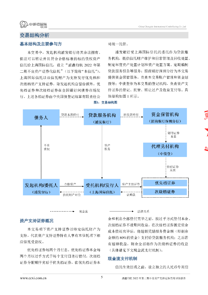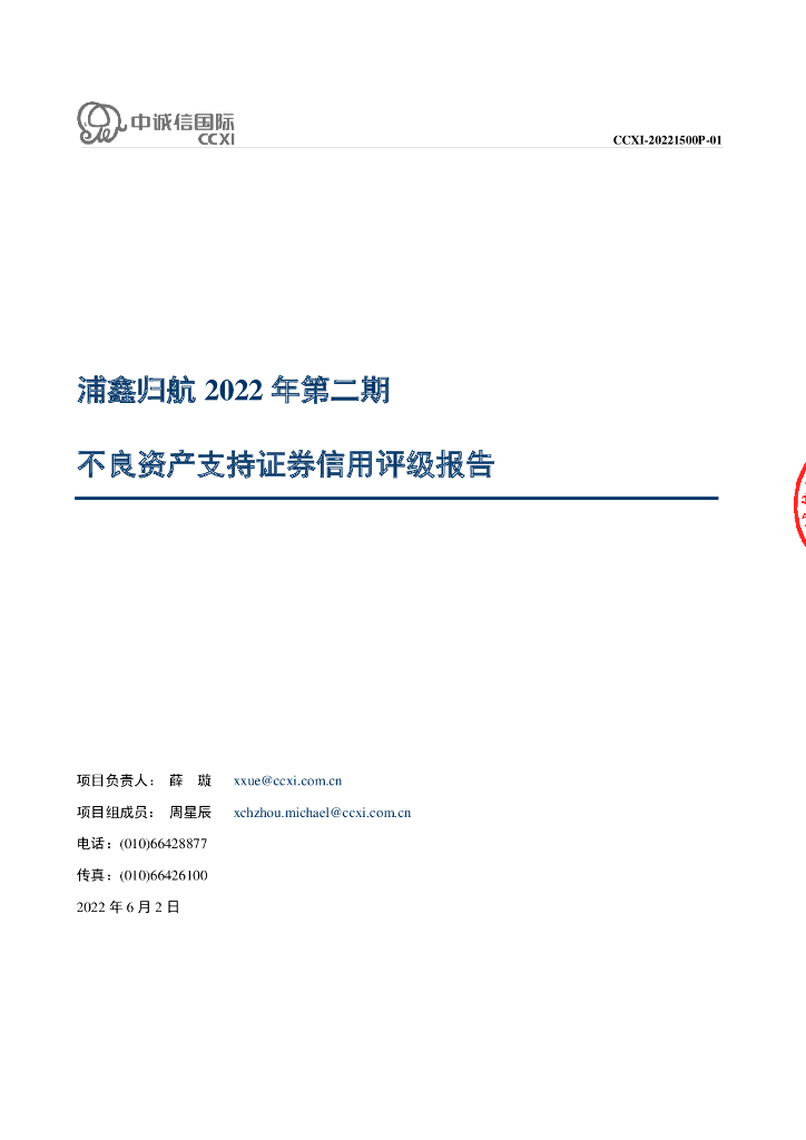 中诚信:浦鑫归航2022年第二期不良资产支持证券信用评级报告及跟踪评级安排(中诚信国际).pdf