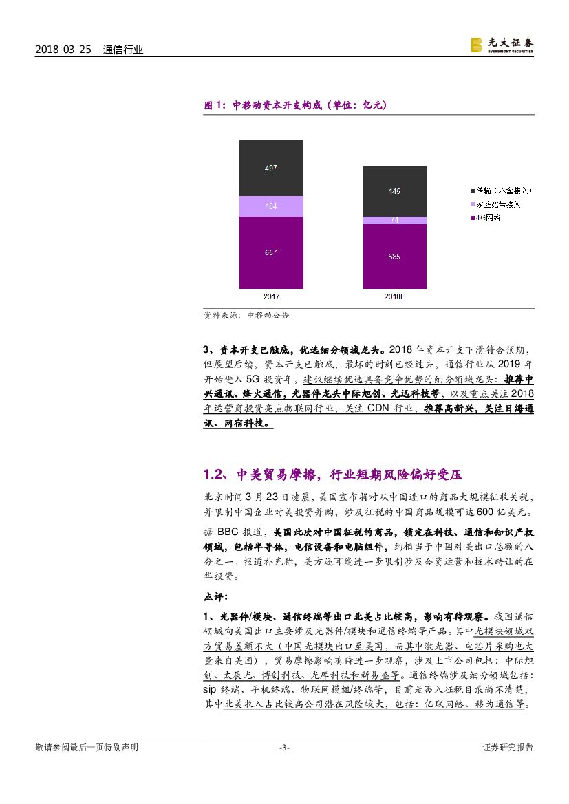 光大证券:通信行业周报:中移动2018年资本开支出炉,贸易摩擦压制行业短期风险偏好.pdf