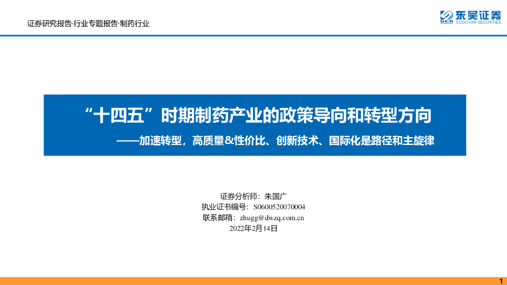 东吴证券:“十四五”时期制药产业的政策导向和转型方向——加速转型,高质量&性价比、创新技术、国际化是路径和主旋律.pdf