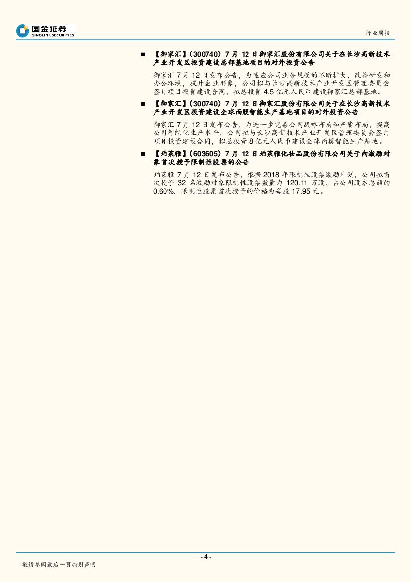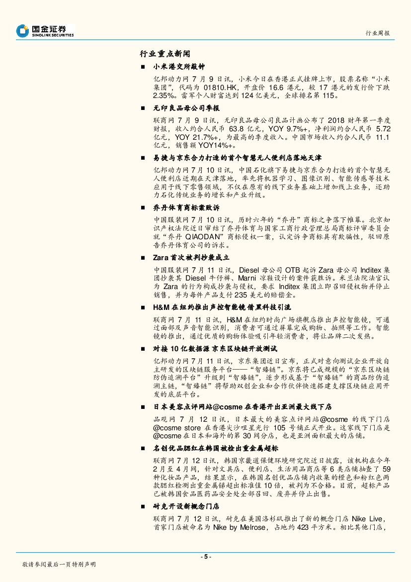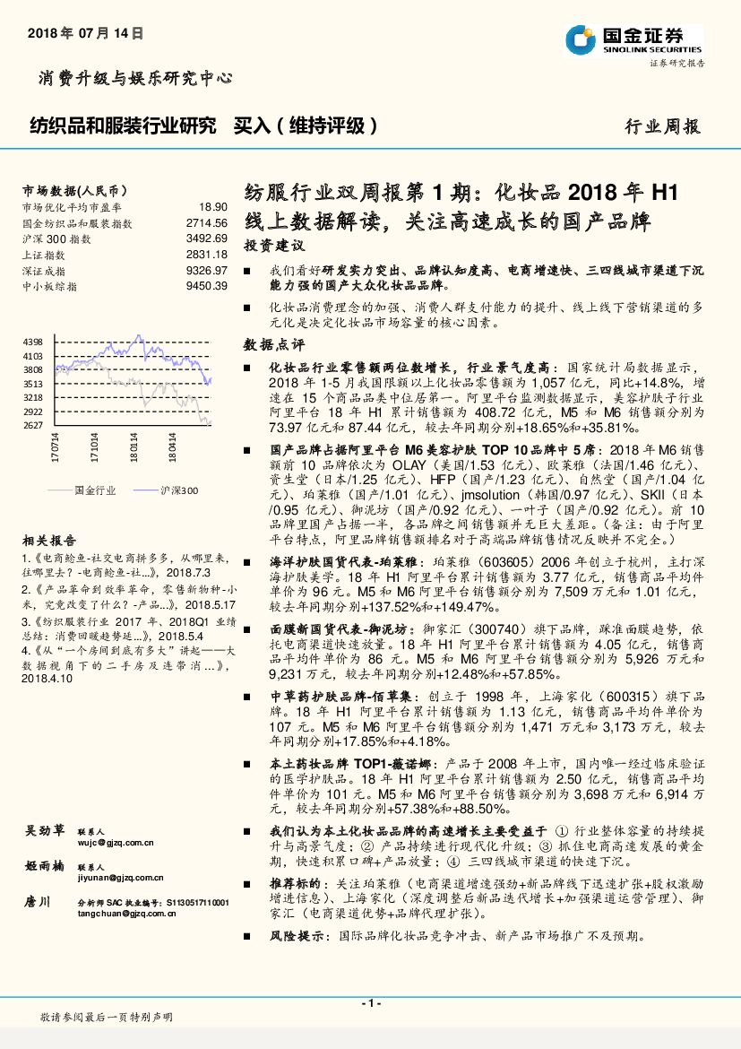 国金证券:纺织品和服装行业研究周报:纺服行业双周报第1期:化妆品2018年H1线上数据解读,关注高速成长的国产品牌.pdf