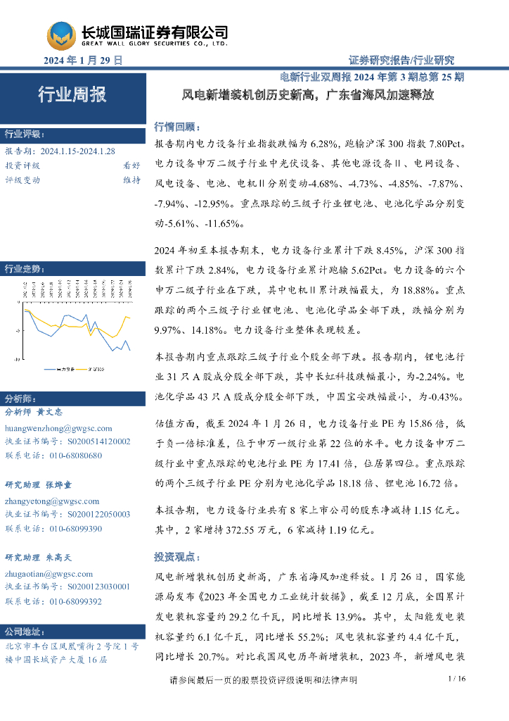 长城国瑞证券:电新行业双周报2024年第3期总第25期:风电新增装机创历史新高,广东省海风加速释放.pdf