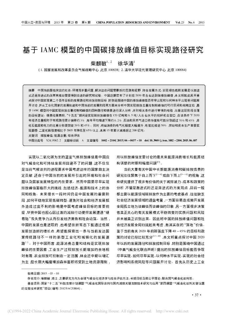 柴麒敏:基于IAMC模型的中国碳排放峰值目标实现.pdf