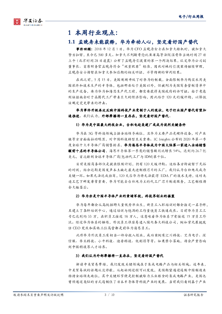 华安证券:电子行业周报:华为牵动人心,坚定看好国产替代.pdf