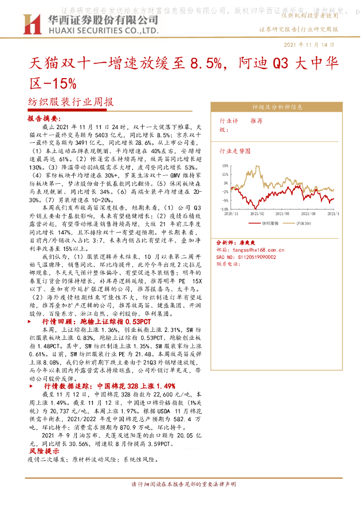 华西证券:纺织服装行业周报:天猫双十一增速放缓至8.5%,阿迪Q3大中华区-15%.pdf