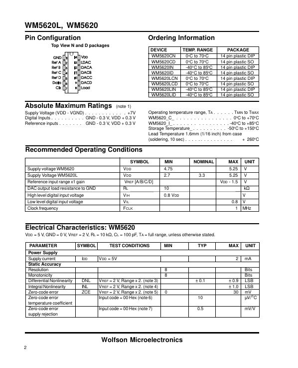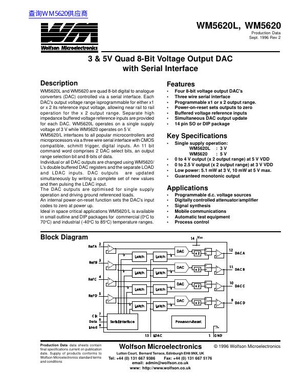 Wolfson Microelectronics WM5620L, WM5620 数据手册.pdf